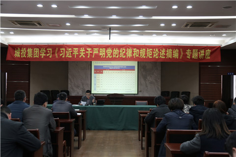 為進(jìn)一步認識加強黨的紀律建設的極端重要性,準確把握紀律建設的基本要求,根據上級學(xué)習《論述摘編》通知的有關(guān)要求,3月30日下午,城投集團公司在六樓會(huì )議室舉行了學(xué)習《習近平關(guān)于嚴明黨的紀律和規矩論述摘編》專(zhuān)題講座。講座邀請了市紀委案管室鐘新春主任前來(lái)授課,公司領(lǐng)導、中層干部和重點(diǎn)崗位專(zhuān)業(yè)技術(shù)人員70多人參加了本次學(xué)習。