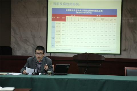 鐘主任的授課貼近實(shí)際,講解深入淺出,分當前反腐倡廉形式,學(xué)習《論述摘編》把紀律和規矩挺起來(lái),加強黨風(fēng)廉建設的建議三個(gè)部分。
